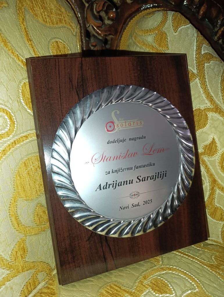 Uručenje nagrade „Stanislav Lem“ piscu fantastike Adrijanu Sarajliji, biće upriličeno u petak 31. oktobra u 15 časova na Međunarodnom sajmu knjiga u Beogradu, na štandu izdavačke kuće „Solaris“.